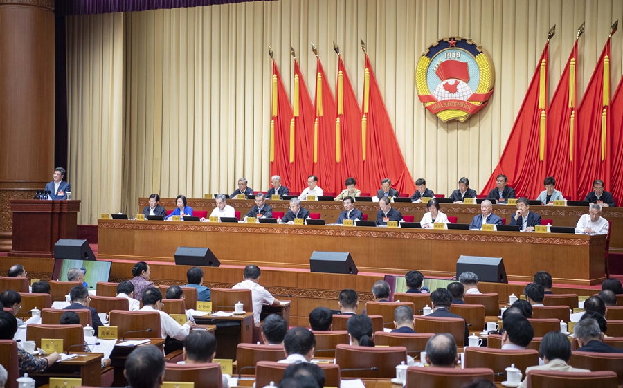 ??全國政協(xié)副主席邵鴻主持會議。中共中央政治局委員、全國政協(xié)副主席石泰峰,全國政協(xié)副主席胡春華、沈躍躍、周強、何厚鏵、梁振英、巴特爾、蘇輝、高云龍、陳武、穆虹、咸輝、王東峰、蔣作君、何報翔、王光謙、秦博勇、朱永新、楊震出席會議。